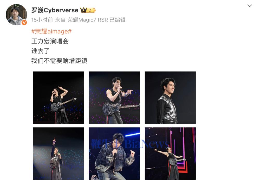 10月9日,荣耀终端首席影像工程师罗巍晒出演唱会实拍图金风资本,称“我们不需要啥增距镜”。